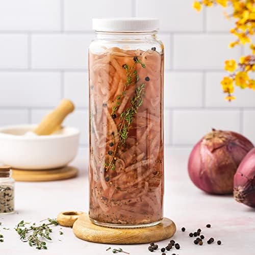 SUPER VERSATILE JARS FOR FRIDGE – The king-sized jar space is ideal for all wellness drinks, coffees & teas, herbal syrups, probiotic kefir, soups, salads, cut-up veggies & fruits, bone broths and liquors. May also be used for pickling, preserving, spices, dressings, favors, honey, crafts. Tall, Slim design works great in the refrigerator.