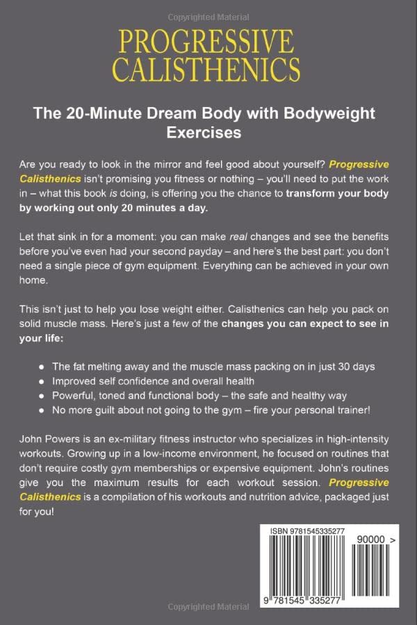 Calisthenics: The 20-Minute Dream Body with Bodyweight Exercises and Calisthenics provides a thorough, practical program designed to help you get results fast. Using Powers’ system as your secret weapon, you’ll soon see the fat melting away and the muscle-mass packing on.