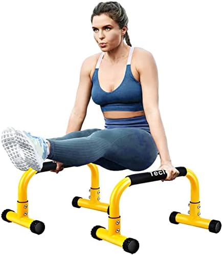 💛【Perfect Size】 The parallettes size L:17in* W:8.3in *H:9.5in, 1.5in diameter, 0.079in (2mm) tube thickness. Commercial thickness can fully support 660LBS. Extended handle and perfect height provide the right space great for you to do dips, pushups, V-sits, L-sits, tuck, planche, handstand push ups, ab workouts , stretches and many more bodyweight strength training.