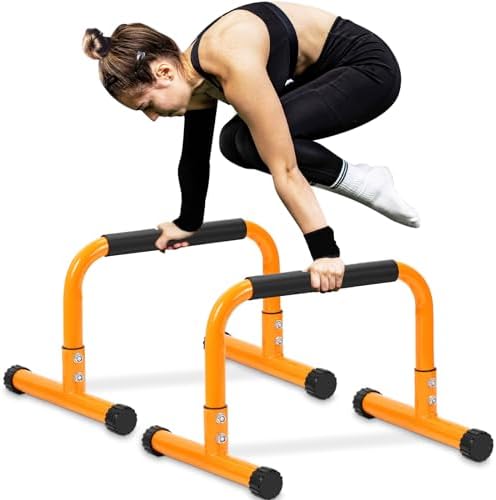 TABEKE Push Up Bar, 14'' High Steel Parallettes & Dip Bar with Full Coverage Foam Handle, Heavy-Duty Calisthenics Parallel Bars for L-Sit, Dips, Home Gym Strength Training Workout