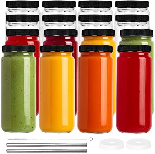 HIGH QUALITY & HEALTHY: Our glass juice bottles are made of high quality food-grade glass, clear and harmless. They are reusable and durable, also can replace plastic bottles, help reducing plastic pollution.