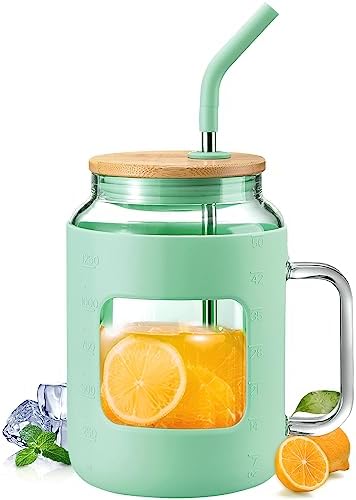 SILICONE SLEEVE& OUNCE MARKERS: Silicone sleeve prevents condensation from dripping everywhere. With the non-slip grip, our coffee mug is perfect for office and home. 50 Ounce markers help you track your daily hydration with ease.