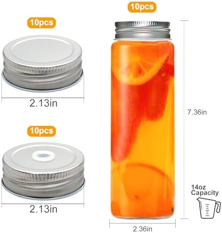 Multiple Liquids Storage Containers: Like mason jars, these 14 oz juicing bottles are perfect for various homemade beverages, such as juice, smoothie, milk, milkshakes, tea, water, beer, oil, kombucha, beverage etc.